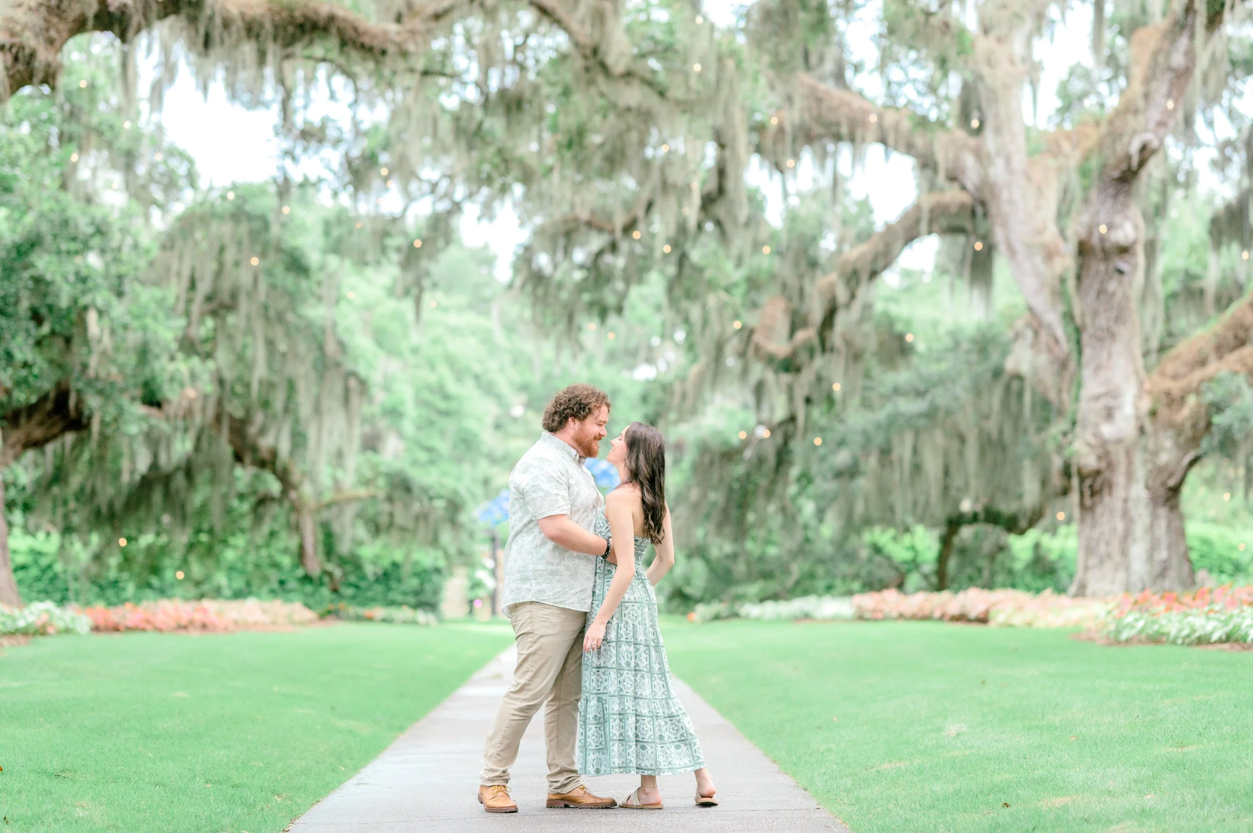We started in the Palmetto Gardens, where the summer blooms brought the most vibrant pops of color. The light danced through the trees, the flowers framed every moment beautifully, and together it all created a dreamy backdrop for their love story. Every photo felt alive—bright, warm, and full of joy—just like Jobie and his fiancée.